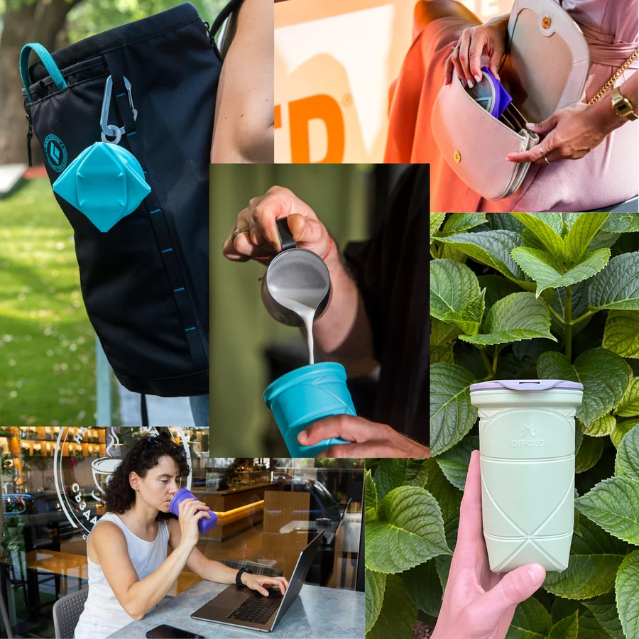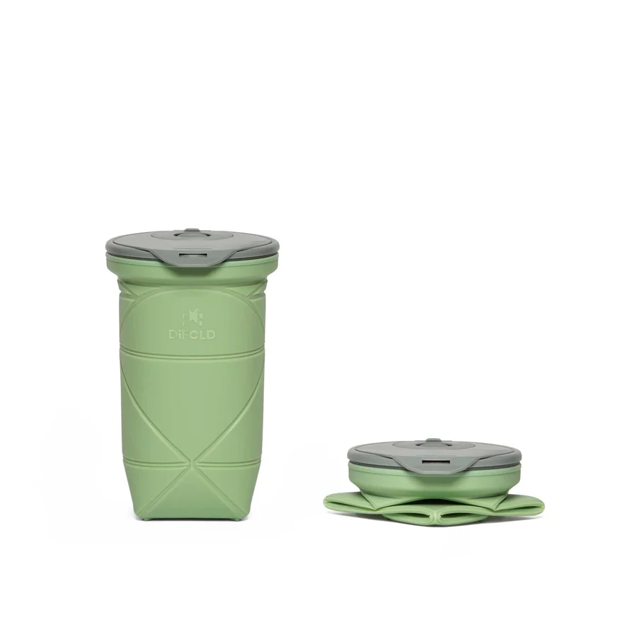 Оригами сгъваема чаша с двойно изолираща, непропусклива капачка. Подходяща за всякакви топли и студени напитки.