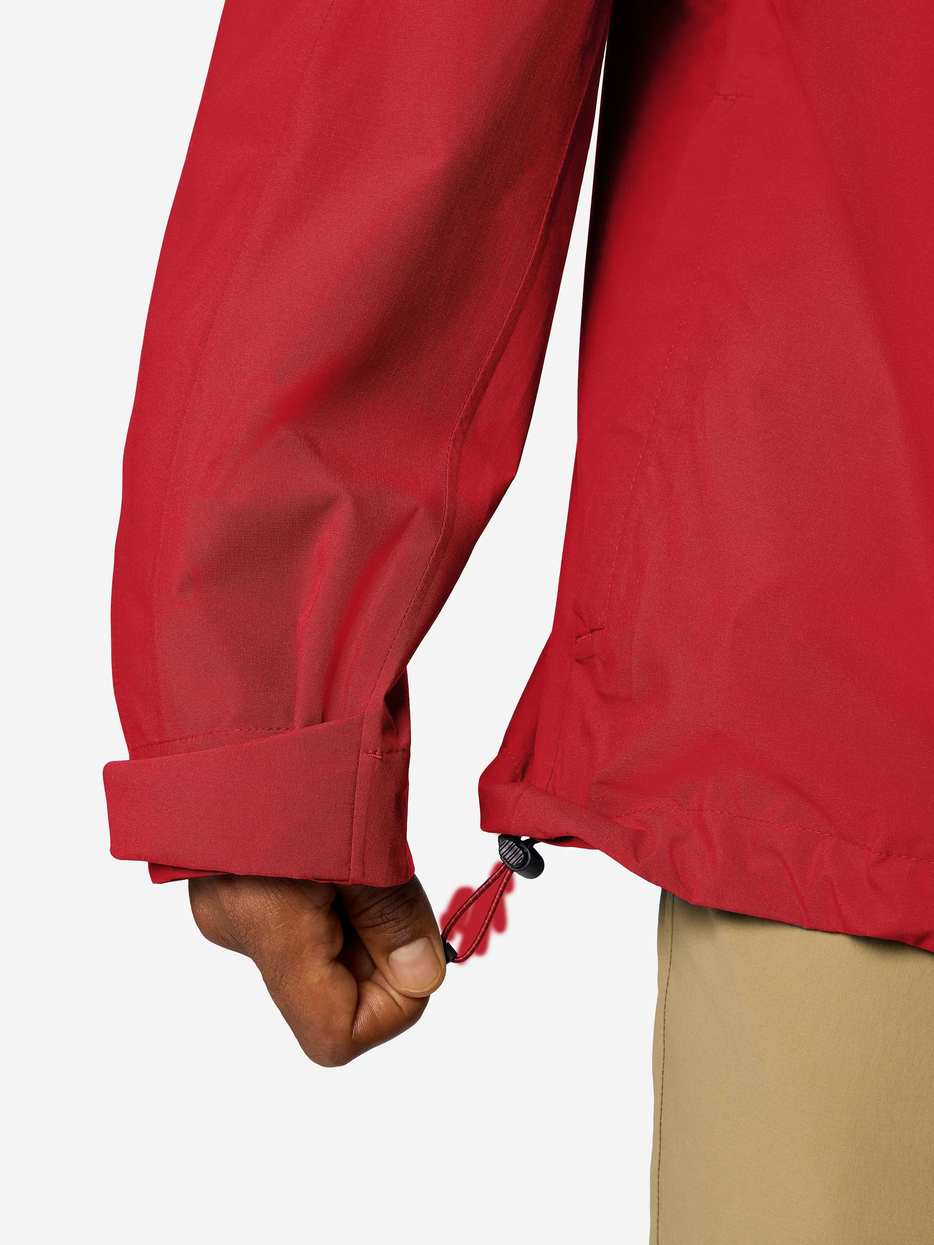 Напълно подлепените шевове гарантират защита от влага, а вентилационните ципове под мишниците позволяват бързо регулиране на температурата. Якето се прибира в собствения си джоб, което го прави удобно за носене при пътуване и преходи.
